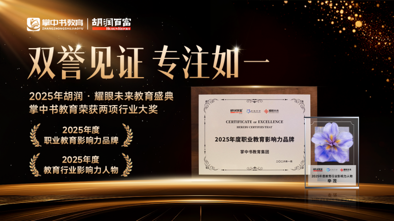 在本次胡润耀眼未来教育盛典上,掌中书教育凭借其在医考培训教育领域的卓越表现,一举斩获“2025年度职业教育影响力品牌”奖项,其创始人兼CEO辛茂同时获评“2025年度职业教育影响力个人”。